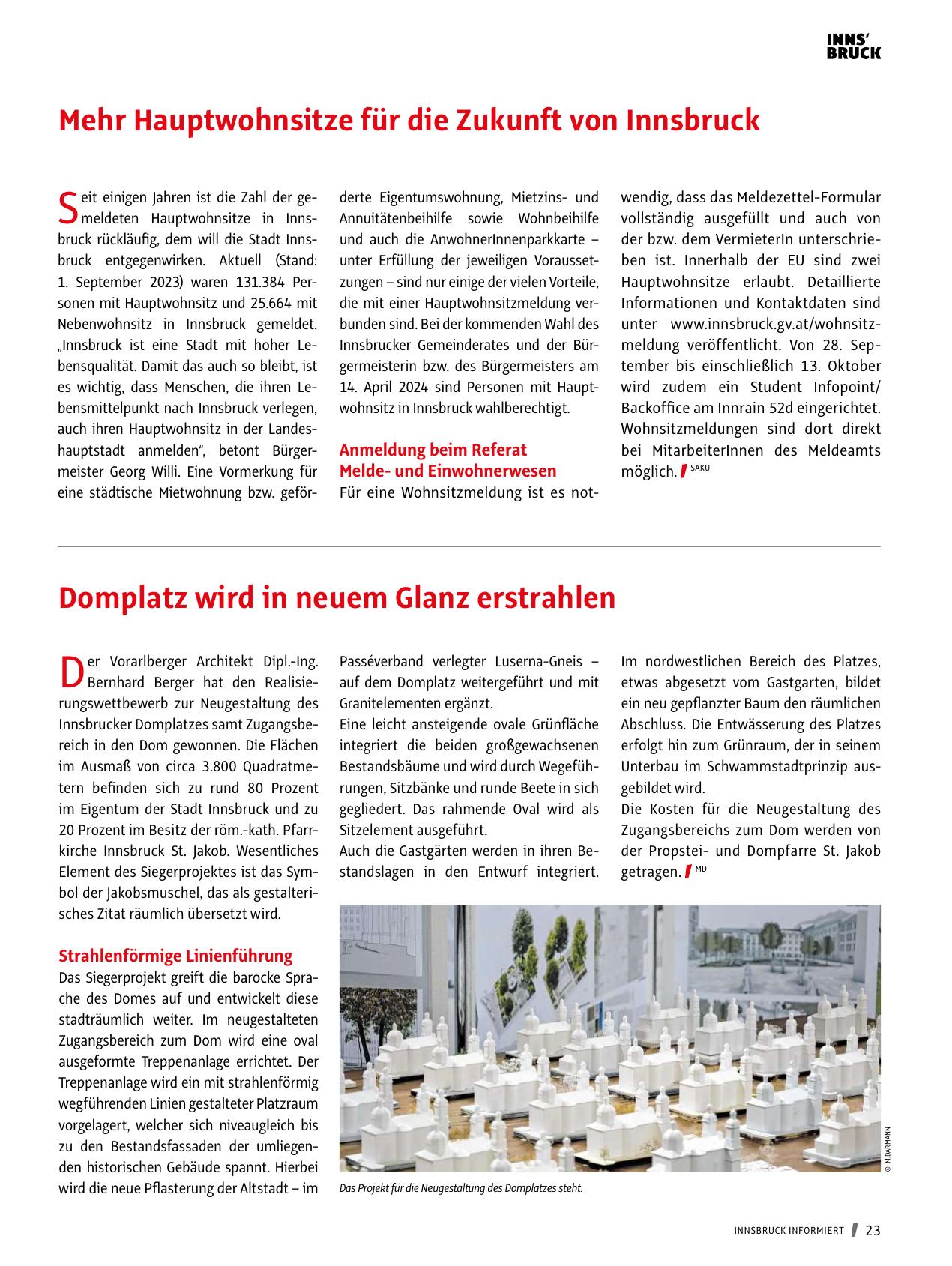 auch ihren Hauptwohnsitz in der Landeshauptstadt anmelden“, betont Bürgermeister Georg Willi. Eine Vormerkung für