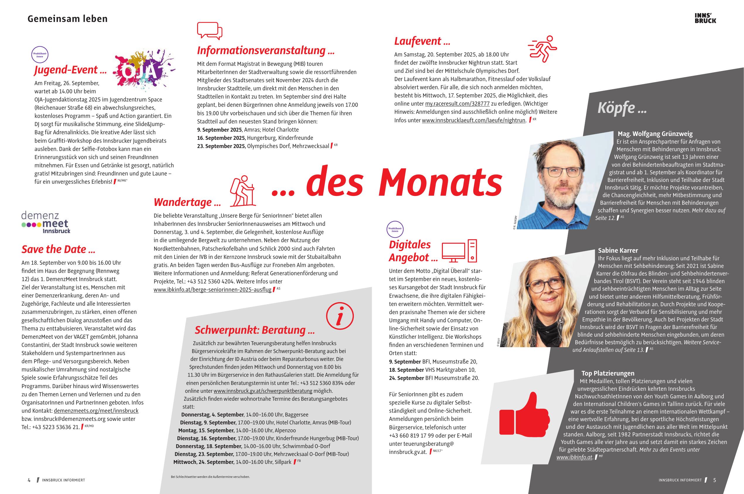 online unter www.innsbruck.gv.at/schwerpunktberatung möglich.