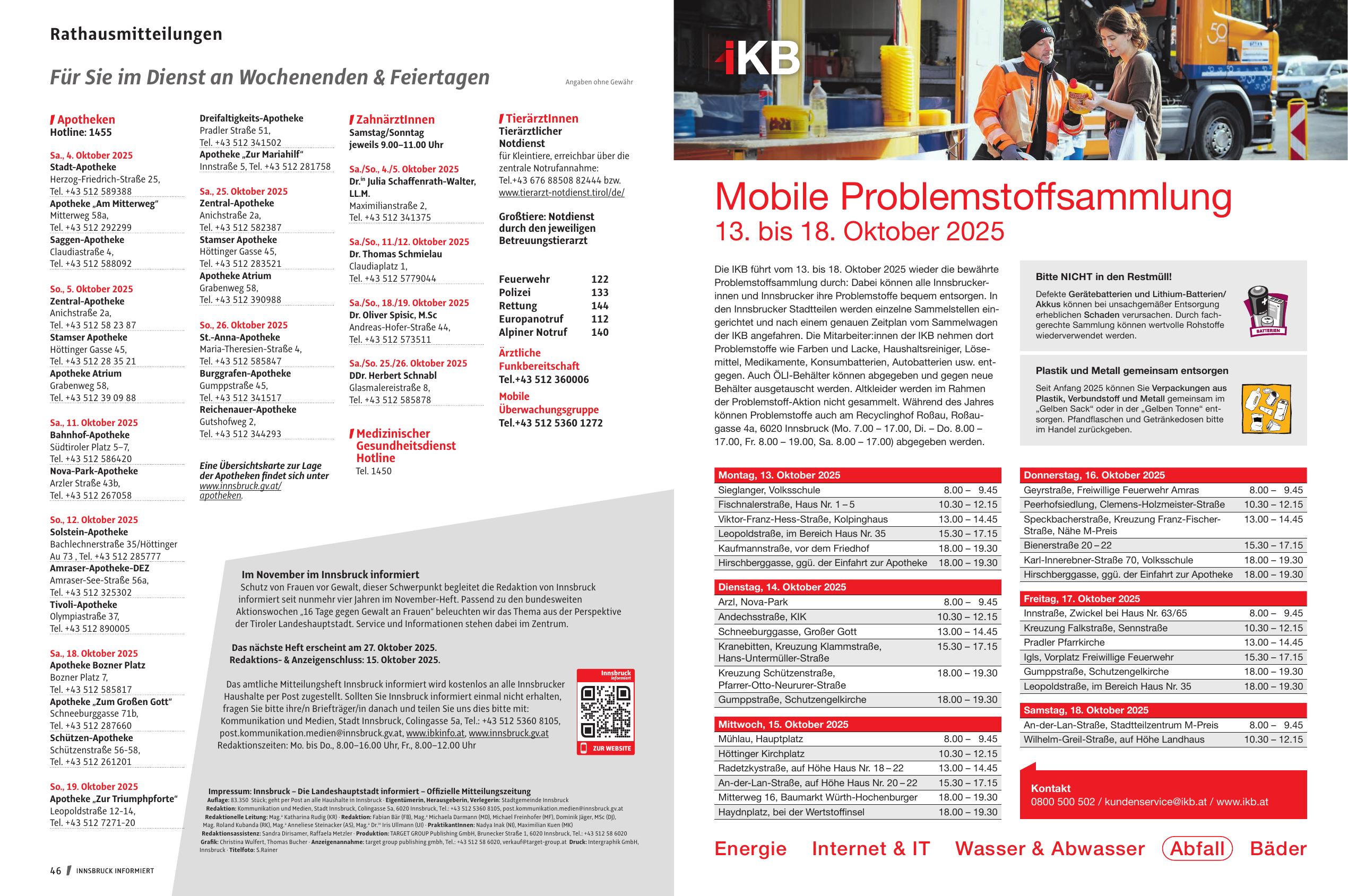 Impressum: Innsbruck – Die Landeshauptstadt informiert – Offizielle Mitteilungszeitung