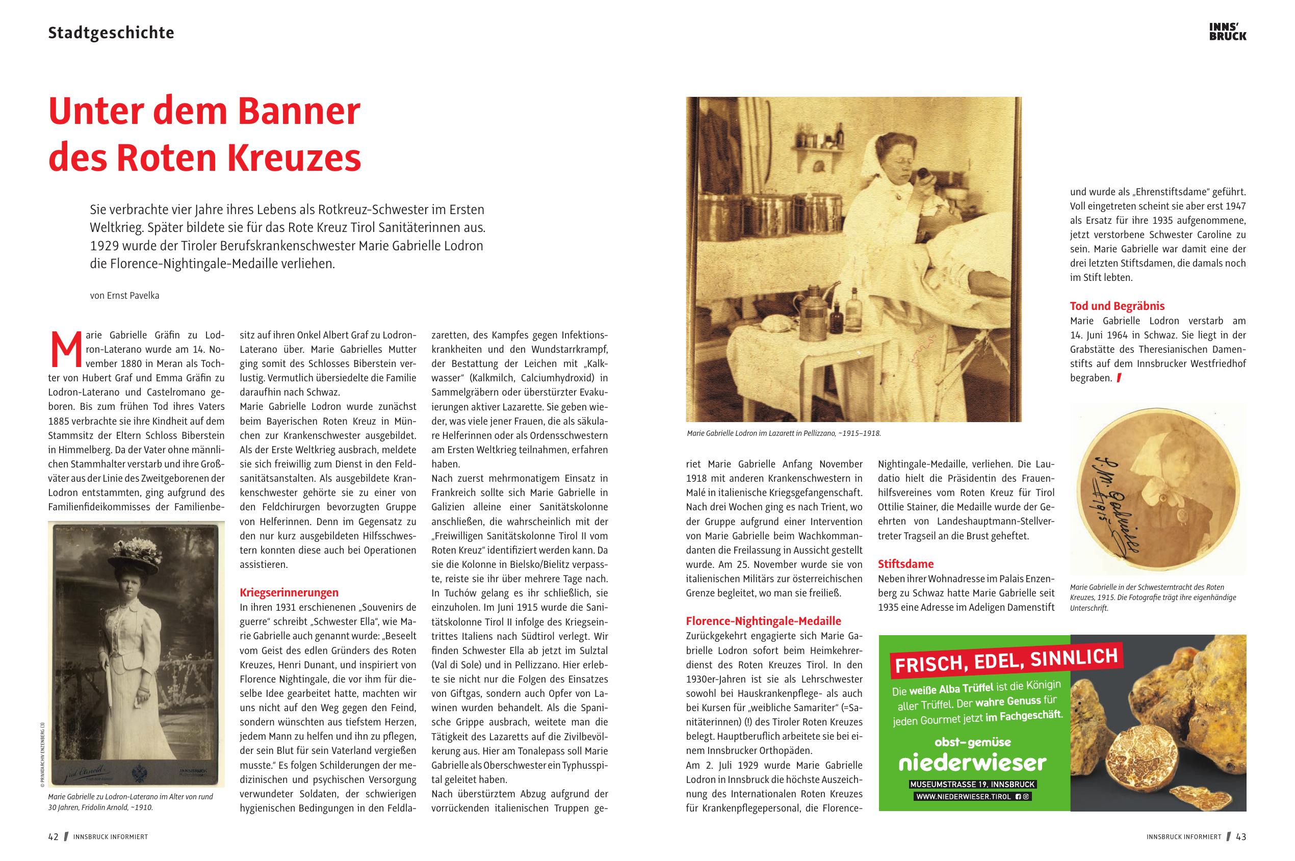 Zurückgekehrt engagierte sich Marie Gabrielle Lodron sofort beim Heimkehrerdienst des Roten Kreuzes Tirol. In den