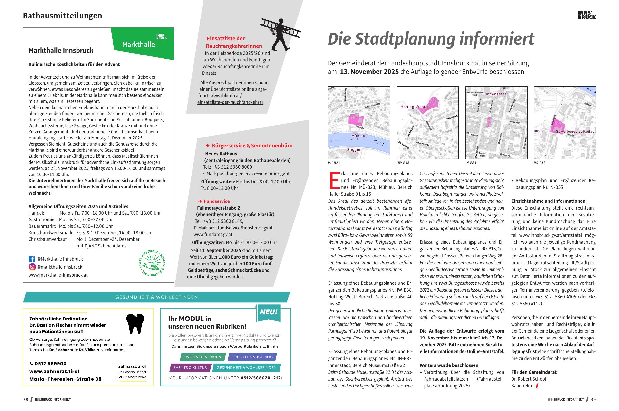 auf. Detaillierte Informationen zu den aufgelegten Entwürfen werden nach vorheriger Terminvereinbarung gegeben (telefonisch unter +43 512 5360 4105 oder +43